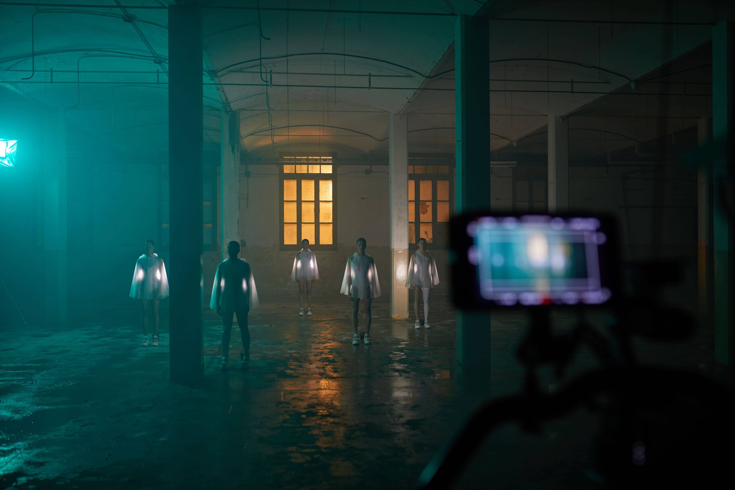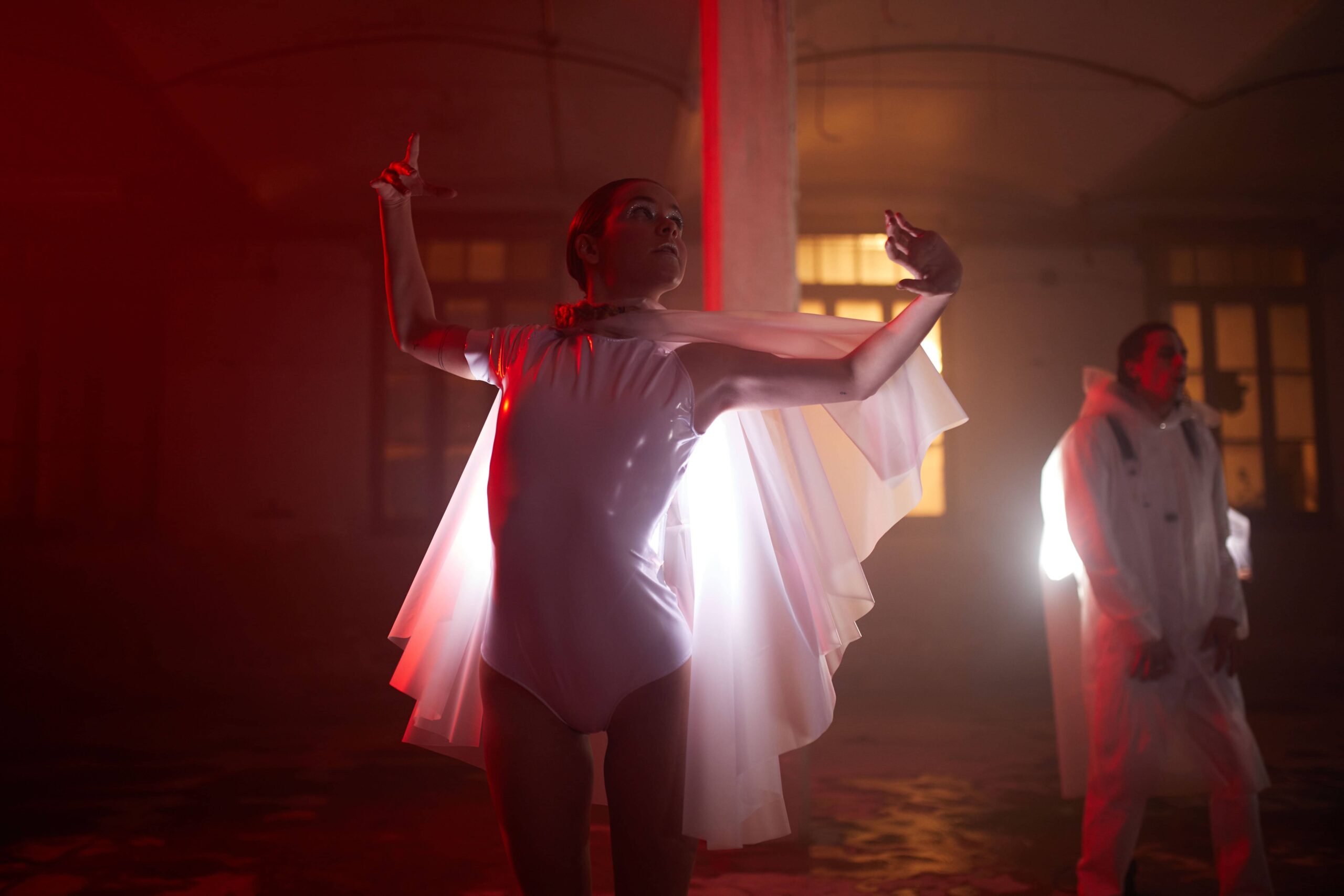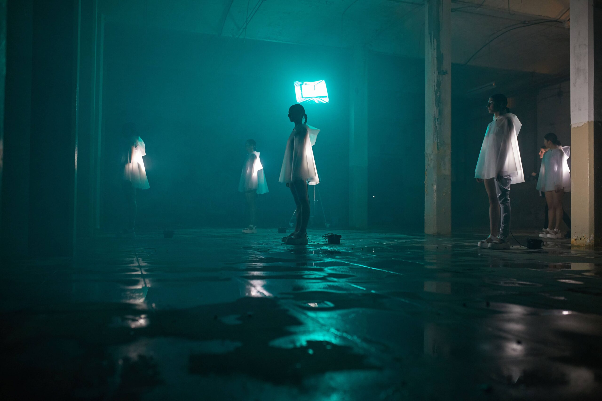 Abrigo oversize confeccionado en plástico alimentario a conjunto con las capas para el resto del cuerpo de baile realizados para el videoclip de Hermanita de Lucas Bun. 2020
